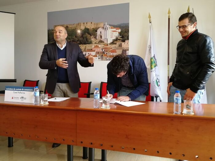 Procedeu-se hoje à assinatura do contrato para execução do saneamento de Casal Palheiros, na freguesia de Santa Maria, S. Pedro e Matacães. Trata-se de uma obra que vai abranger cerca de 22 alojamento e 50 pessoas, sendo mais um contributo importante para a despoluição das nossas linhas de água, ao mesmo tempo que se vai fechando a malha da rede pública de saneamento. A obra terá uma duração de 240 dias e um custo de 140 mil euros