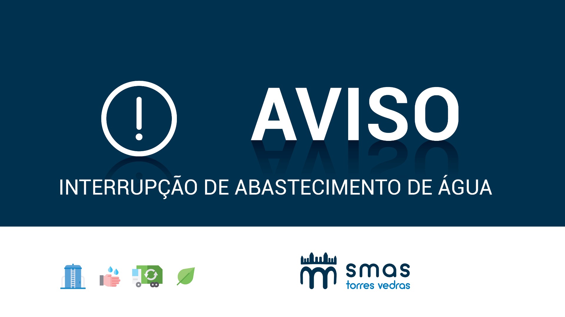 Na sequência das obras da Empreitada de Reabilitação de Estações Elevatórias e Estações Sobrepressoras de Água – 2.ª fase, a levar a efeito na Estação Sobrepressora de Catefica, os Serviços Municipalizadores de Água e Saneamento (SMAS) de Torres Vedras irão interromper o abastecimento domiciliário de água, no próximo dia 12 de maio entre as 9h00 e as 19h00.